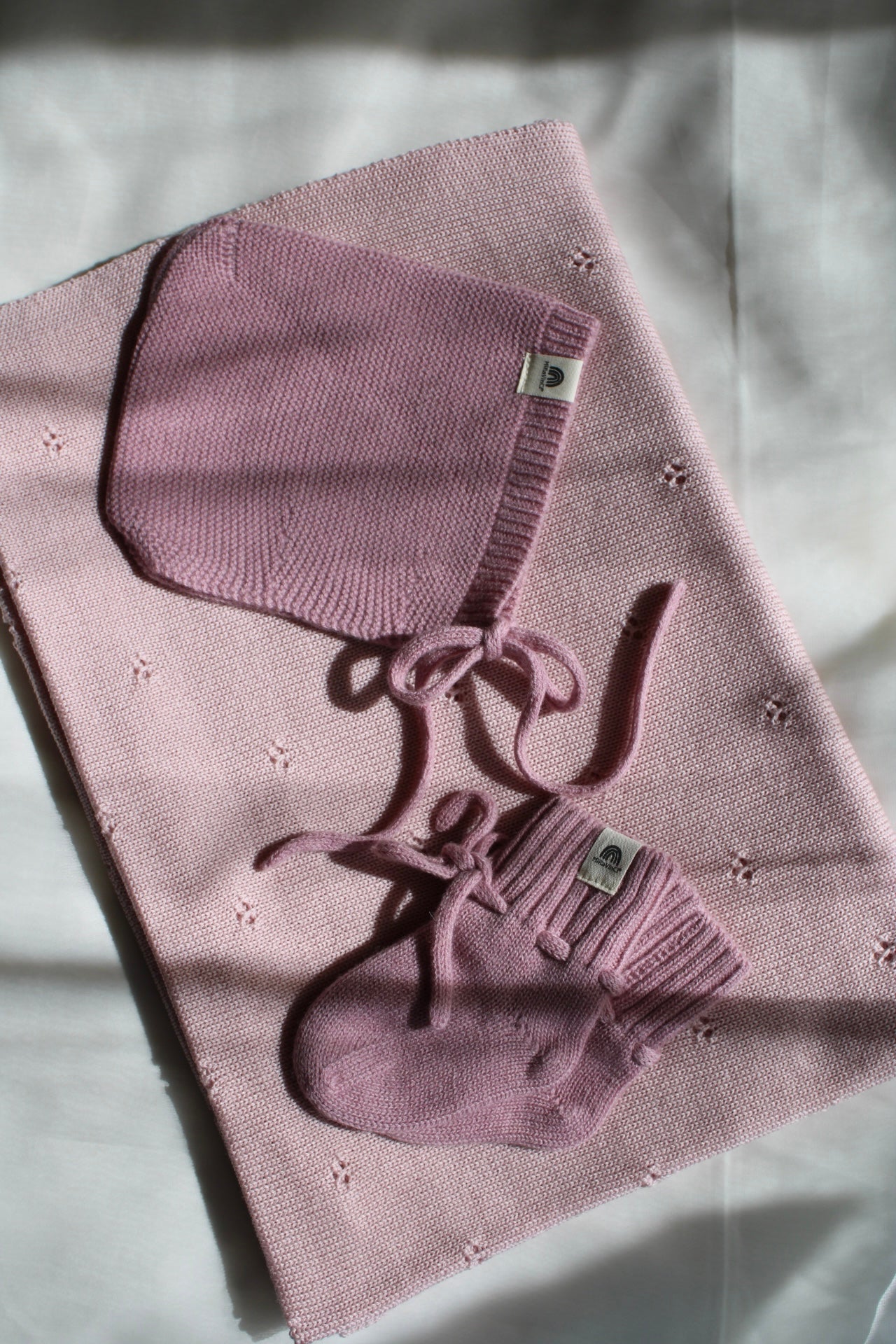Unsere Mützen und Schuhe sind ab Geburt geeignet und wachsen bis in den 12 Monat mit (je nachdem wie groß dein Baby ist und wie schnell es wächst kann die Kleidung auch nur bis zum 9. Monat passen).